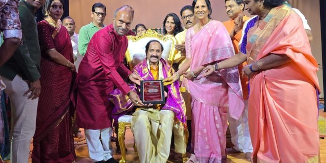 In Dallas, USA, on August 9, 2025, at a program jointly organized by the Value Financial Services and the Tirumala Family Foundation, renowned singer, Bhagavadgita preacher and propagator as well as founder chairman of the Bhagavadgita Foundation, Dr. L. V. Gangadhara Sastry, was honored with a Lifetime Achievement Award. Announcing the award, the founder of Tirumala Family Foundation and Value Financial Services, Sri. Kumbum Tirumala Reddy, stated: “Dr. Sastry is the first Indian singer who rendered all 700 verses of the Bhagavad Gita in Telugu, complete with meaning, in his own musical composition, recorded with the highest technical standards to create the feeling of a divine vision when heard. The album was released by Dr. A. P. J. Abdul Kalam and Vishwesha Tirtha Swami. Without stopping there, he has dedicated the last two decades of his life to selfless promotion of the Bhagavadgita for building a virtuous society. This award recognizes those immense spiritual services.”