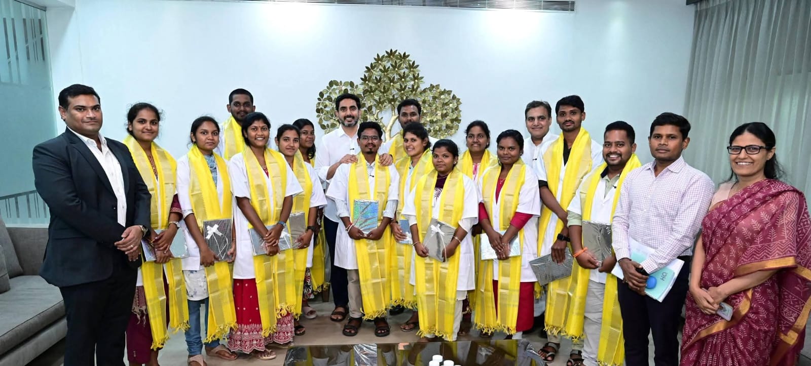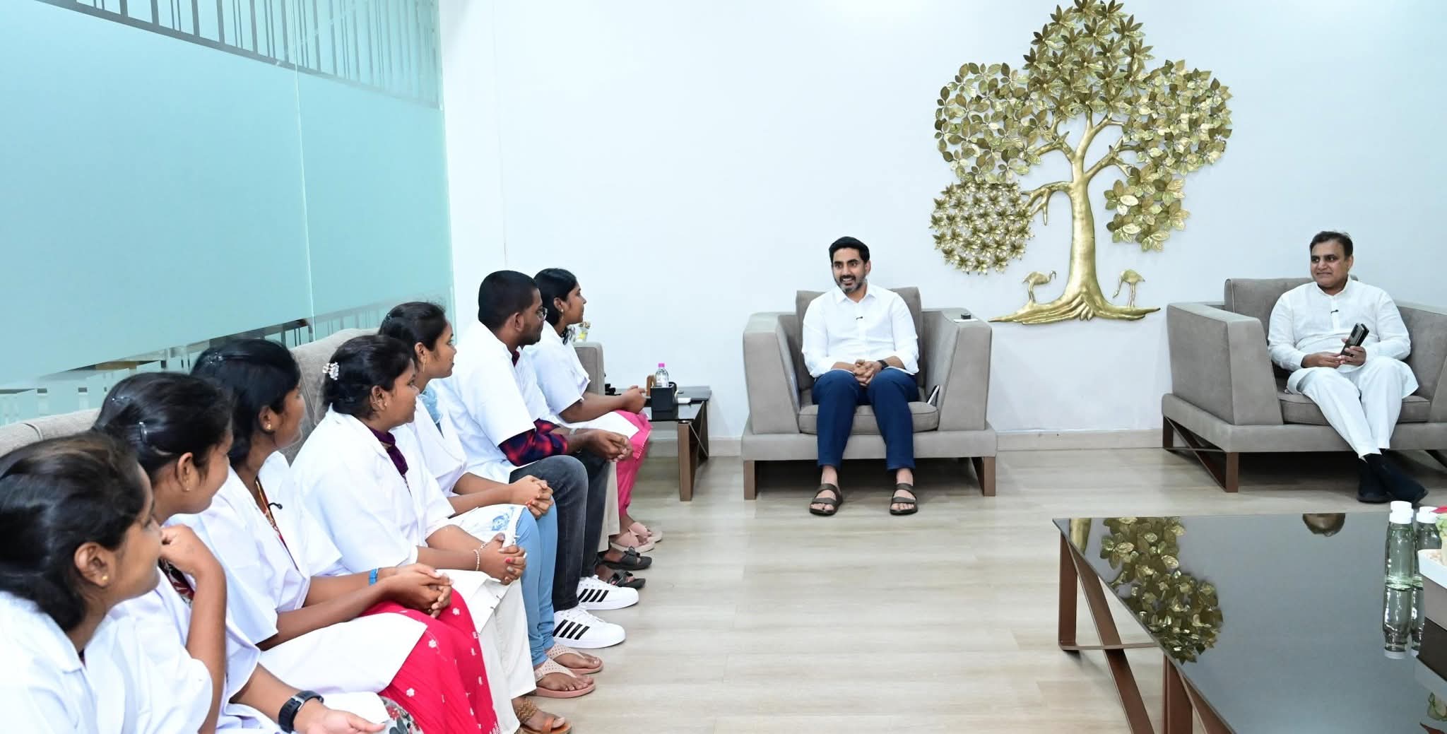 బిఎస్సీ నర్సింగ్ కోర్సు చదివిన తాము స్థానిక ఆసుపత్రుల్లో నెలకు 15వేల నుంచి రూ.20వేల జీతానికి పనిచేసే వాళ్లం. సీడాప్ ద్వారా శిక్షణ తర్వాత నెలకు రూ.2.8లక్షల శాలరీతో జర్మనీలో ఉద్యోగం లభించడం తమకు కలగా ఉందని జర్మనీలో ఉద్యోగాలు సాధించిన విద్యార్థులు భావోద్వేగానికి గురయ్యారు. సీడాప్ ద్వారా శిక్షణ పొంది జర్మనీలో ఉద్యోగాలుసాధించిన14మందియువతీయువకులతో మంత్రి లోకేష్ సమావేశమయ్యారు. వీరిలో 9మంది నిరుపేద ఎస్సీలు కాగా, ముగ్గురు బి.సిలు ఉన్నారు. విదేశీ ఉద్యోగాలు పొందిన వారు మంత్రి లోకేష్ ఎదుట తమ మనోభావాలను తెలియజేస్తూ… తాము ప్రైవేటు కన్సల్టెన్సీల వద్ద ఇదే ఉద్యోగాల శిక్షణ కోసం సంప్రదిస్తే 8లక్షల వరకు అడిగారు. అంత డబ్బు భరించే స్థోమత మా కుటుంబాలకు లేదు. సీడాప్ ద్వారా ఒక్కరూపాయి తీసుకోకుండా 8నెలలపాటు ఎ1 నుంచి బి2 వరకు జర్మన్ భాషల్లో శిక్షణ ఇచ్చి, ఉద్యోగం వచ్చేలా చేశారు. వివిధ కారణాల వల్ల తొలిప్రయత్నంలో ఫెయిలైన వారికి సైతం మళ్లీ శిక్షణ ఇచ్చి పాసయ్యేలా చేశారు. జర్మనీ వెళ్లాక మా జీవితాలు మారిపోబోతున్నాయి. తమ కలను సాకారం చేసిన ముఖ్యమంత్రి చంద్రబాబునాయుడు, మంత్రి నారా లోకేష్ చేసిన సహాయాన్ని జీవితంలో మరువబోమని వారు పేర్కొన్నారు. దీనికి మంత్రి లోకేష్ స్పందిస్తూ… కూటమి ప్రభుత్వం ద్వారా శిక్షణ పొంది విదేశాల్లో ఉద్యోగాలు పొందిన ఒక్కొక్కరు పదిమంది జర్మనీలో ఉద్యోగాలు సాధించేలా గైడెన్స్ ఇవ్వాలని సూచించారు. ఈ కార్యక్రమంలో సీడాప్ చైర్మన్ గునిపాటి దీపక్ రెడ్డి, ఎపి స్కిల్ డెవలప్ మెంట్ కార్పొరేషన్ ఎండి గణేష్ కుమార్, స్కిల్ ఇంటర్నేషనల్ యాక్టివిటీస్ సలహాదారు సీతాశర్మ, సీడాప్ సిఇఓ పి.నారాయణస్వామి, సీడాప్ ఎగ్జిక్యూటివ్ డైరక్టర్ కె.శ్యామ్ ప్రసాద్, సీడాప్ స్టేట్ మిషన్ మేనేజర్ ఎల్.ప్రసాద్ బాబు తదితరులు పాల్గొన్నారు.