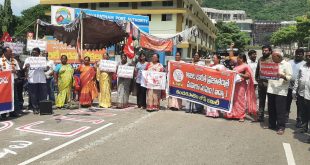 విశాఖపట్నం,ఐఏషియ న్యూస్: పోర్టు హాస్పిటల్ ప్రైవేటీకరణ అపాలని 365వ రోజు హాస్పటల్ వద్ద మానవహారం ర్యాలీ నిర్వహించారు. అనంతరం సిఐటియు గౌరవ అధ్యక్షులు పద్మనాభ రాజు మాట్లాడుతూ మన పోరాటం వలన గోల్డెన్ జూబ్లీ హాస్పిటల్ ను కాపాడుకుంటాం. టెండర్ కి ఎవరి రాలేదు, హాస్పిటల్ అభివృద్ధి కోసం చైర్మన్ కమిటీ వేయడం జరిగింది. పోర్ట్ దగ్గర ఉన్న సోంత నిధులతో అభివృద్ధి చేయాలిహాస్పిటల్ ప్రైవేటీకరణ పై 365 రోజులుగా మాట్లాడుతున్న కార్మికులకు అభినందనలు.హాస్పిటల్ ప్రైవేటీకరణ అనైతికమని, హాస్పిటల్ అభివృద్ధి కార్మికుల కృషితోనే సాధ్యమైందని, …