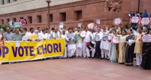 న్యూఢిల్లీ,ఐఏషియ న్యూస్: ఇండియా’ కూటమి సోమవారం నాడు ఎన్నికల సంఘంపై తీవ్రస్థాయిలో విరుచుకుపడింది.ఎన్నికల సంఘం(ఈసీ) పక్షపాతంగా వ్యవహరిస్తోందని, ఇటీవల జరిగిన ఎన్నికల్లో అవకతవకలకు పాల్పడిందని ఆరోపించింది. ముఖ్యంగా బీహార్ అసెంబ్లీ ఎన్నికలకు ముందు హడావిడగా ఓటర్ల జాబితాలో మార్పులు చేయడంపై కూటమి నాయకులు తీవ్ర అభ్యంతరం వ్యక్తం చేశారు. ఢిల్లీలోని కాన్స్టిట్యూషన్ క్లబ్ ఆఫ్ ఇండియాలో జరిగిన విలేకరుల సమావేశంలో కాంగ్రెస్ ఎంపీ గౌరవ్ గొగోయ్, టీఎంసీ ఎంపీ మహువా మొయిత్రా,ఎస్పీ నుంచి రాంగోపాల్ యాదవ్, ఆర్జేడీ నుంచి మనోజ్ ఝా, ఆప్ …