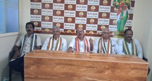 విశాఖపట్నం,ఐఏషియ న్యూస్: తెలుగును ఓ పాఠ్యాంశంగా కాకుండా తెలుగు భాషలో ప్రాథమిక విద్యాబోధనకు పెద్ద పీట వేసి, ఆంగ్లాన్ని పాఠ్యాంశంగా బోధించడం ద్వారా తెలుగు భాషను పరిరక్షించాలని “తెలుగు దండు” ఆంధ్రప్రదేశ్ రాష్ట్ర ప్రభుత్వాలకు విజ్ఞప్తి చేసింది. ప్రభుత్వం తెలుగు మాధ్యమం పట్ల సానుకూల నిర్ణయం తీసుకోని పక్షంలో అసెంబ్లీ సమావేశాల్లో గాంధేయ మార్గంలో సాగే మాతృభాష పరిరక్షణ ఉద్యమ ఉధృతిని రుచి చూడాల్సి ఉంటుందని హెచ్చరించారు. విశాఖపట్నంలోని తెలుగు దండు కార్యాలయంలో సోమవారం ఉదయం తెలుగు భాషాభిమానులు విలేకరుల సమావేశం నిర్వహించారు. తెలుగుదండు …