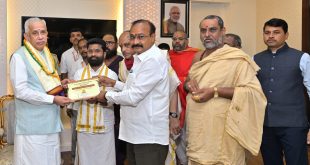 ఆహ్వానించిన ఎండోమెంట్ కమిషనర్ రామచంద్ర మోహన్, ఈవో నాయక్ విజయవాడ,ఐఏషియ న్యూస్: దేవదాయ శాఖ కమిషనర్ కె.రామచంద్ర మోహన్, దుర్గగుడి ఈవో వి.కె.శీనా నాయక్తో కలిసి దసరా ఉత్సవాల ఆహ్వాన పత్రికను బుధవారం ఆంధ్రప్రదేశ్ గవర్నర్ అబ్దుల్ నజీర్ కి అందజేశారు. ఈ సందర్భంగా ఇంద్రకీలాద్రిపై దసరా ఉత్సవాల కోసం జరుగుతున్న ఏర్పాట్ల పురోగతిని వారు గవర్నర్ కు దేవాదాయ కమిషనర్ రామచంద్రమోహన్, ఈవో నాయక్ అన్ని విషయాలు వివరించారు. Authored by: Vaddadi udayakumar