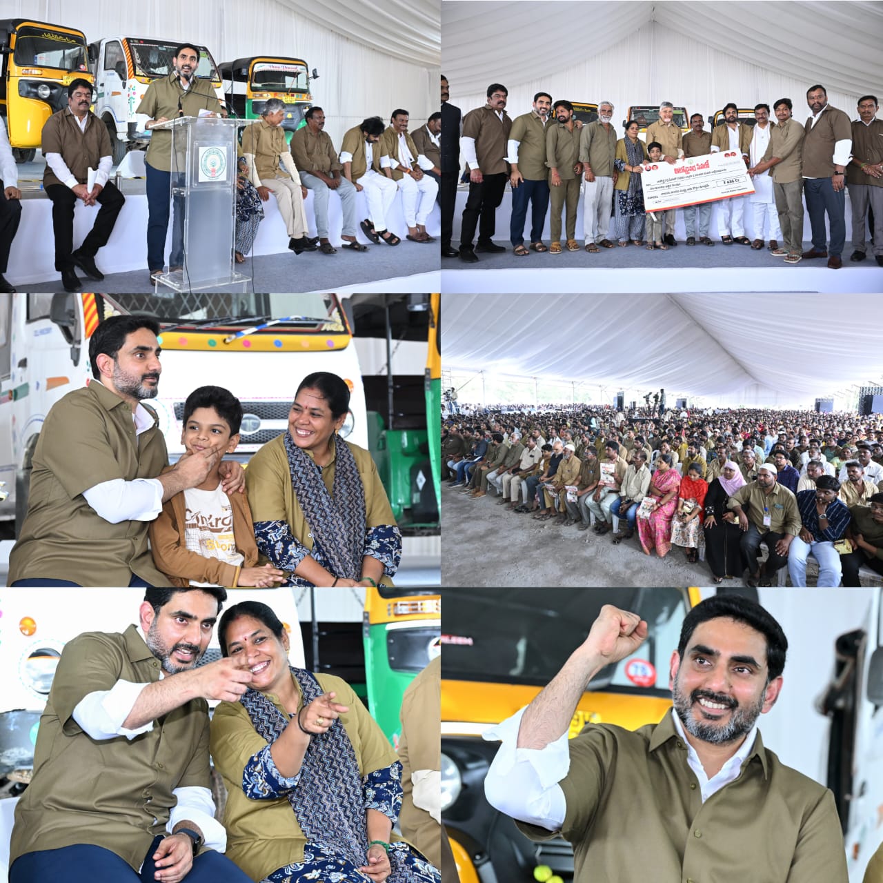 అమరావతి,ఐఏషియ న్యూస్: గత ఎన్నికల్లో ప్రజలు మాపైన ఒక పవిత్ర బాధ్యత పెట్టారు. గత పాలకులు మీటింగ్ పెడితే పరదాలు, బారికేడ్లు కట్టేవారు. ఈరోజు ముఖ్యమంత్రి, ఉప ముఖ్యమంత్రి సామాన్యుల మాదిరి మీ ముందుకు వచ్చారు. మీ రుణం తీర్చుకోవడమే మా లక్ష్యం. అహర్నిశలు కష్టపడి ఎన్ని ఆర్థిక ఇబ్బందులు ఉన్నా ఇచ్చిన ప్రతిహామీ నిలుపుకునే బాధ్యత ప్రజా ప్రభుత్వం తీసుకుంటుందని రాష్ట్ర విద్య, ఐటి, ఎలక్ట్రానిక్స్ శాఖల మంత్రి నారా లోకేష్ అన్నారు. ఆటోడ్రైవర్ సేవలో పథకం ప్రారంభోత్సవం సందర్భంగా విజయవాడ సింగ్ నగర్ మాకినేని బసవపున్నయ్య స్టేడియంలో నిర్వహించిన కార్యక్రమానికి మంత్రి లోకేష్ అతిధిగా హాజరయ్యారు. ఈ సందర్భంగా మంత్రి నారా లోకేష్ మాట్లాడుతూ ఈరోజు ఆంధ్రప్రదేశ్ లో డబుల్ ఇంజన్ సర్కారు ఉంది. కేంద్రంలో ప్రధాని నరేంద్ర మోడీ, రాష్ట్రంలో ముఖ్యమంత్రి చంద్రబాబునాయుడు నేతృత్వంలో డబుల్ ఇంజన్ సర్కారు అద్భుతంగా పనిచేస్తుండటం వల్లే ఎన్ని ఇబ్బందులున్నా ఇచ్చిన ప్రతి హామీ నిలబెట్టుకుంటున్నాం, సంక్షేమ కార్యక్రమాలు అమలు చేయగలుగుతున్నాం. ఇది మీ అందరి ప్రభుత్వం… మళ్ళీ వస్తాం… మీ పిల్లల భవిష్యత్తు చూసుకునే బాధ్యత ప్రజా ప్రభుత్వం తీసుకుంటుందని మంత్రి లోకేష్ పేర్కొన్నారు.ఇంట్లో ఎన్ని ఇబ్బందులు ఉన్నా… ఆటో ఎక్కిన వారిని నవ్వుతూ పలకరించేది ఆటో డ్రైవర్లు. గ్రామ స్థాయి నుండి రాష్ట్ర రాజకీయాల వరకూ చర్చించేది ఆటోలోనే అని రాష్ట్ర విద్య, ఐటి శాఖల మంత్రి నారా లోకేష్ అన్నారు. విశ్వవిఖ్యాత నటసార్వభౌమ స్వర్గీయ నందమూరి తారకరామారావు గారు డ్రైవర్ గా నటించిన సినిమా డ్రైవర్ రాముడు. మీ అందరి బాలయ్య.. నా ముద్దుల మావయ్య డ్రైవర్ గా నటించిన సినిమా లారీ డ్రైవర్. పవనన్న డ్రైవర్ గా నటించిన సినిమా అత్తారింటికి దారేది. అన్న ఎన్టీఆర్ ఖాకీ డ్రెస్సు వేసి చైతన్యరథంపై తిరిగితే ఢిల్లీ గడగడ లాడింది. మన ముఖ్యమంత్రి చంద్రబాబు గారికి ఆటో డ్రైవర్ల కష్ఠాలు బాగా తెలుసు. ఆయన ఎప్పుడు అధికారంలో ఉన్నా ఆటో డ్రైవర్లకు సహాయం అందిస్తూనే ఉన్నారు. వారి కష్టాలు తీర్చేందుకే ఇప్పుడు మన ప్రజా ప్రభుత్వం ఆటో డ్రైవర్ల సేవలో పథకం ప్రారంభించింది. ఆటో వెనకాతల రాసే కొటేషన్లు గురించి లోకేష్ ప్రస్తావించారు.