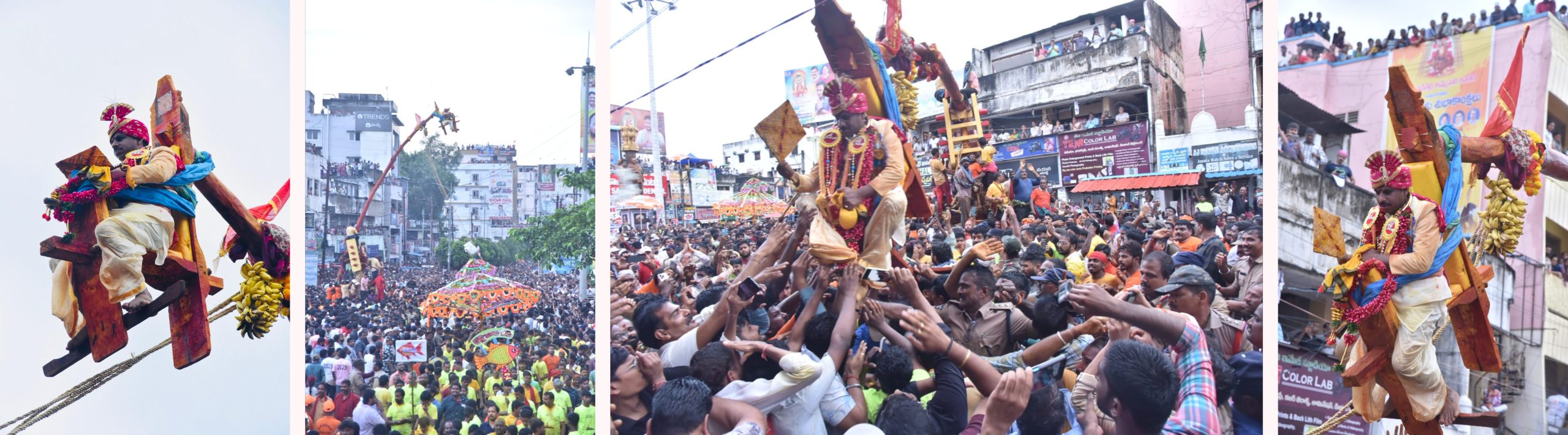 - పట్టణ పురవీధుల్లో ముమ్మారు ఊరేగిన పైడితల్లమ్మ