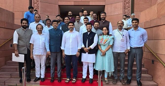 న్యూఢిల్లీ,ఐఏషియ న్యూస్: ఢిల్లీ పర్యటనలో భాగంగా కేంద్ర సహకారం మరింతగా పొందడానికి, రాష్ట్ర ఐటీ, విద్య, హెచ్ ఆర్ డి మంత్రి, టిడిపి జాతీయ ప్రధాన కార్యదర్శి నారా లోకేష్ ని సోమవారం టిడిపి పార్లమెంటరీ పార్టీ కార్యాలయంకు ఆహ్వానించినట్లు విశాఖ పార్లమెంట్ సభ్యులు మతుకుమిల్లి శ్రీభరత్ తెలిపారు.మంత్రి నారా లోకేష్ తో ఎంపీ శ్రీభరత్ , తోటి సహచర ఎంపీలు కలిసి పలువురు కేంద్ర మంత్రులను కలిసి ఆంధ్రప్రదేశ్ అభివృద్ధికి సంబంధించి కీలకమైన పలు ప్రాజెక్టులపై చర్చలు జరిపారు.ఈ సమావేశాల్లో ఎంపీ శ్రీభరత్ తో పాటు కేంద్రమంత్రి కింజరాపు రామ్ మోహన్ నాయుడు, కేంద్ర సహాయమంత్రి శ్రీ పెమ్మసాని చంద్ర శేఖర్, టిడిపి పార్లమెంటరీ పార్టీ అధ్యక్షుడు లావు కృష్ణ దేవరాయలు, ఇతర సహచర టిడిపి ఎంపీలు పాల్గొన్నారు.