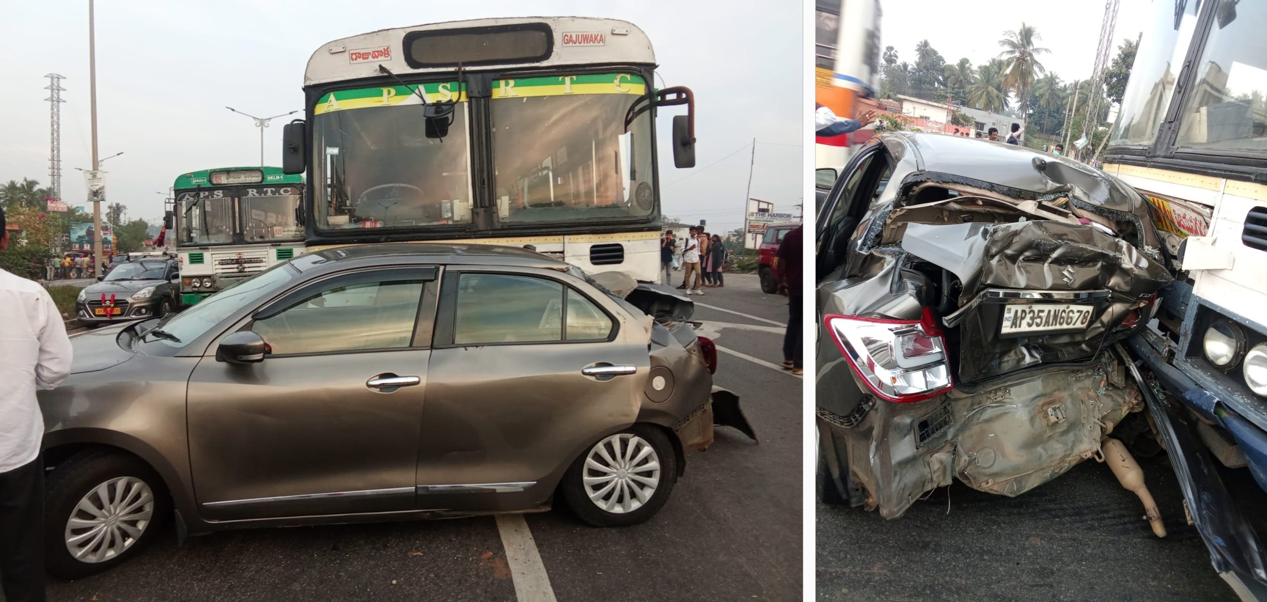 ఆనందపురం(విశాఖపట్నం),ఐఏషియ న్యూస్: ఆనందపురం మండలంలోని వేములవలస వద్ద కారును వెనక నుండి ఆర్టిసి బస్సు ఢీకొనడంతో కారు నుజ్జు నుజ్జు అవ్వగా ఎవరికి ఎటువంటి ప్రాణనష్టం కలగపోవడంతో అందరూ ఊపిరి పీల్చుకున్నారు. విజయనగరం జిల్లా చీపురుపల్లి కి చెందిన జి గోవింద్ తో పాటు మరో వ్యక్తి చీపురుపల్లి నుండి మధురవాడ వెళ్తుండగా హైవే నుండి వేముల వలస పెట్రోల్ బంక్ వైపు సర్వీస్ రోడ్లో వస్తుండగా అదే సమయంలో విజయనగరం నుండి పాత గాజువాక వెళ్తున్న గాజువాక డిపో ఆర్టీసీ బస్సు వెనక నుండి అతి వేగంగా వచ్చి కారు ను ఢీకొందని పోలీసులు వివరించారు.ఈ సంఘటనలో స్విఫ్ట్ డిజైర్ కారు నుజ్జు నుజ్జులయింది. అయితే కారులో ఉన్న వారికి బస్సులో ప్రయాణిస్తున్న వారికి ఎటువంటి ప్రాణనష్టం జరక్కుండా బయటపడడంతో అందరూ ఒక్కసారిగా ఊపిరి పీల్చుకున్నారు.కారు నడుపుతున్న జి గోవింద్ ఇచ్చిన ఫిర్యాదు మేరకు ఎస్ ఐ జి సంతోష్ కేసు నమోదు చేసి తదుపరి దర్యాప్తు నిమిత్తం హెచ్ సి కృష్ణకు అప్పగించారు.