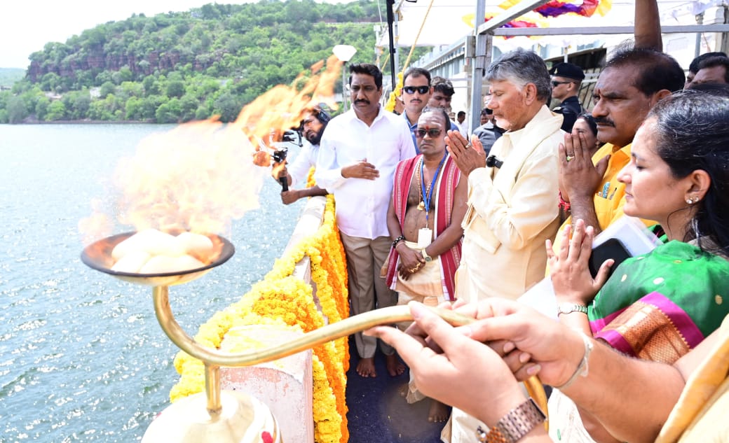 ముందుగా శ్రీశైలం ఆలయంలో ప్రత్యేక పూజలు నిర్వహించిన అనంతరం జలాశయం వద్దకు చేరుకుంటారు. జలహారతి కార్యక్రమంలో భాగంగా కృష్ణమ్మకు హారతి ఇస్తారు. తొలి ఏకాదశి నుంచి రైతులు దుక్కులు దున్ని పంటలు వేసుకునే సమయం కావడంతో ప్రతి ఏడాది ఈ జలహారతి కార్యక్రమం నిర్వహిస్తారు. ఎగువ రాష్ట్రాల్లో కురుస్తున్న వర్షాలకు కృష్ణా నది ఇప్పటికే కళకళలాడుతోంది. శ్రీశైలంలోని కుడి, ఎడమ గట్టు జల విద్యుత్ కేంద్రంలో విద్యుత్ ఉత్పత్తి చేస్తున్నారు.మహారాష్ట్రలో కురుస్తున్న భారీ వర్షాల నేపథ్యంలో కృష్ణ, గోదావరి నదులు జలకళను సంతరించుకున్నాయి. సుంకేశుల, జూరాల నుంచి వరద నీరు శ్రీశైలానికి జలాశయానికి పోటెత్తుతోంది. శ్రీశైలం జలాశయం గరిష్ట నీటి మట్టం 885 అడుగులు కాగా, ప్రస్తుతం 881.6 అడుగులకు నీరు చేరింది. పై నుంచి 1,72,705 క్యూసెక్కుల నీరు వచ్చి చేరుతుండటంతో 67,563 క్యూసెక్కుల నీటిని నాగార్జున సాగర్కు విడుదల చేస్తున్నారు. వరద ప్రవాహం ఎక్కువగా ఉండటంతో ముఖ్యమంత్రి చంద్రబాబు నాయుడు జలహారతి కార్యక్రమం అనంతరం అధికారులు దిగువకు నీరు విడుదల చేశారు.