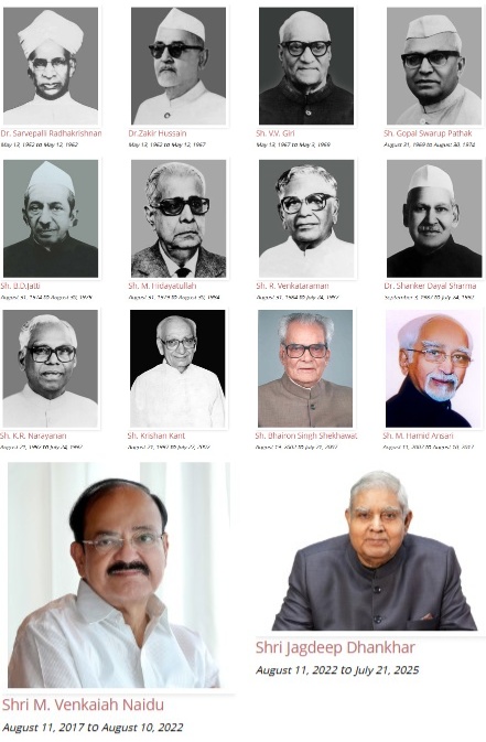 న్యూఢిల్లీ,ఐఏషియ న్యూస్:ఉప రాష్ట్రపతి భారత ప్రభుత్వంలో రెండో అత్యున్నత స్థానం. భారత రాజ్యాంగంలోని 63వ అధికరణంలో ఉపరాష్ట్రపతి పదవి గురించిన ప్రస్తావన ఉంది. ఈ పదవికి సంబంధించి భారత్కు ఒక ప్రత్యేకత ఉంది. ప్రపంచంలోని మరే పెద్ద పార్లమెంటరీ ప్రజాస్వామ్యంలోను లేని అంశం ఇది. పెద్ద ప్రజాస్వామ్యాలలో, అమెరికాలో మాత్రమే ఈ పదవి ఉంది.అయితే భారత్, అమెరికాలలో ప్రజాస్వామ్య విధానాలు వేరు (భారత్లో పార్లమెంటరీ ప్రజాస్వామ్యం,అమెరికాలో అధ్యక్ష ప్రజాస్వామ్య పద్ధతి ఉన్నాయి) అందుచేత ఉప రాష్ట్రపతి విధులకు,అమెరికా ఉపాధ్యక్షుడి విధులకు చాలా తేడా ఉంది.ఉపరాష్ట్రపతి కార్యాలయం ఆర్టికల్ 63 ప్రకారం భారత ఉపరాష్ట్రపతి దేశంలో రెండవ అత్యున్నత రాజ్యాంగ పదవి.అతను ఐదేళ్ల పదవీకాలం పాటు సేవలందిస్తారు.అయితే పదవీకాలం ముగిసినప్పటికీ,వారసుడు పదవీ బాధ్యతలు స్వీకరించే వరకు పదవిలో కొనసాగవచ్చు. ఇప్పటివరకు 14 మంది ఉపరాష్ట్రపత్తులుగా తమ బాధ్యత నిర్వహించారు. ప్రస్తుతం మంగళవారం జరిగిన ఉపరాష్ట్రపతి ఉప ఎన్నికల్లో భారతదేశ 15వ ఉపరాష్ట్రపతిగా సిపి రాధాకృష్ణన్ ఎన్నికయ్యారు. ఎన్నికల్లో ఆయన 452 ఓట్లు సాధించారు. ప్రత్యర్థి జస్టిస్ సుదర్శన్ రెడ్డికి 300 ఓట్లు మాత్రమే లభించాయి. ఉపరాష్ట్రపతిగా ఎన్నికైన రాధాకృష్ణను ప్రధానమంత్రి నరేంద్ర మోడీతో సహా పలువురు అభినందనలు తెలియజేశారు. మన దేశానికి ఉప రాష్ట్రపతులుగా పని చేసిన 14 మంది వివరాలు పాఠకుల కోసం ఐఏషియ న్యూస్ అందిస్తోంది.